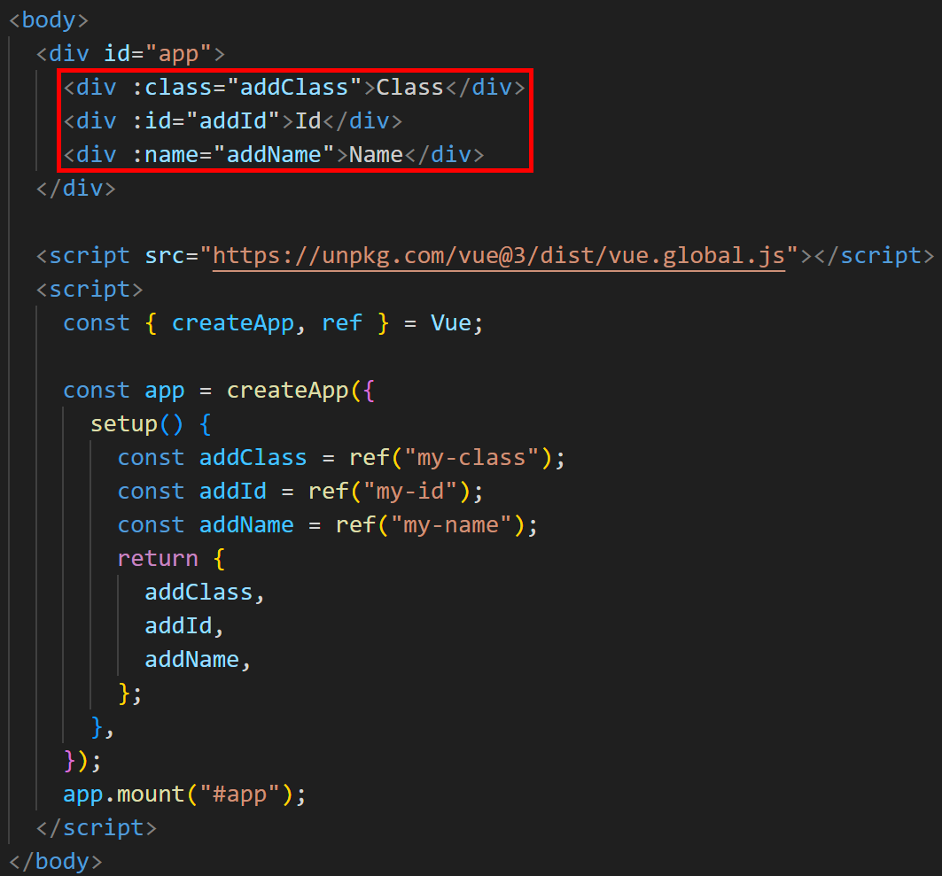 : HTMl 속성 내에서 콧수염 구문을 사용할 수 없기 때문에 v-bind를 이용하여 속성을 동기화 시켜준다.