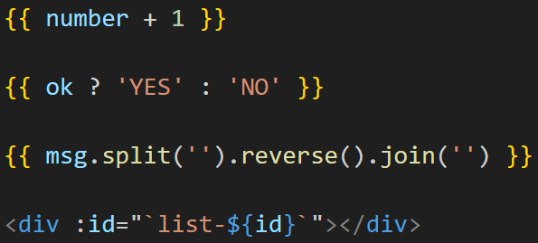 : 모든 데이터 바인딩 내에서 JavaScript 표현식의 모든 기능을 지원한다