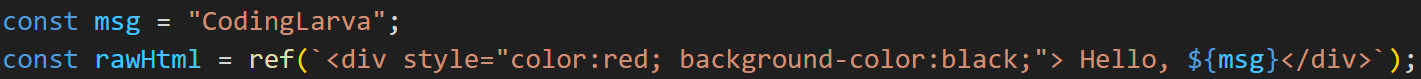 : 다른 언어에서도 많이 사용하는 형태로, 해당 구성 요소 인스턴스의 속성 값으로 대체한다