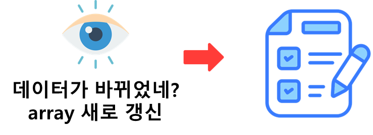 : 예를들어 Array 데이터 내부에 객체가 추가되고 제거될 때마다 Array 길이를 확인한다면 추가 / 제거 함수가 실행 될 때마다 반응형 변수에 직접 할당해줘야하니 2개의 중복 함수가 쓰이게 된다. 이때, Array를 지켜보는 함수(watch)를 사용한다면 자동으로 Array가 변한 것을 인지할 때, 콜백 함수를 실행시킨다. 즉, 중복되는 함수를 한개만 사용 가능하다.