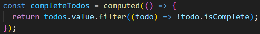 - 의존하는 데이터에 따라 결과가 바뀌는 계산된 속성을 만들때 유용 - 동일한 의존성을 가진 여러 곳에서 사용할 때 계산 결과를 캐싱하여 중복 계산을 방지 - 의존된 데이터가 변경되면 내부에서 자동으로 업데이트 |