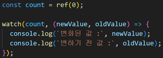 - watch가 감시하고 있는 대상을 의미 (반응형 변수, 값을 반환하는 함수 등)