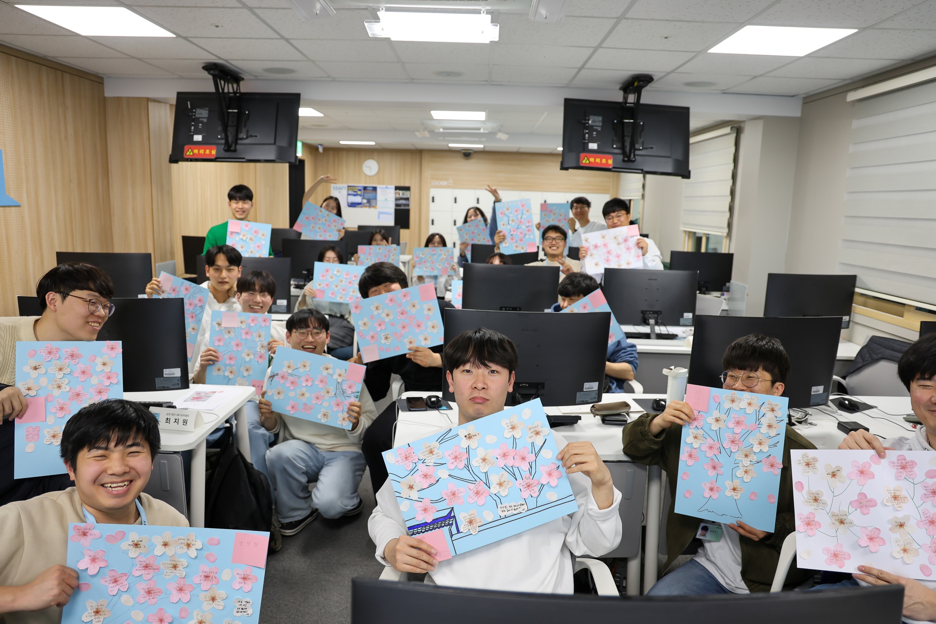 CA(부반장)가 롤링페이퍼하자는 좋은 아이디어를 디벨롭시켜 벚꽃 포스트잇과 하늘색 B3를 통해 하늘과 꽃을 연상시켰다. 이 날 만큼은 비가와도 태풍이 와도 상관없었다. 벚꽃은 우리반 친구들이 직접 피웠으니까.