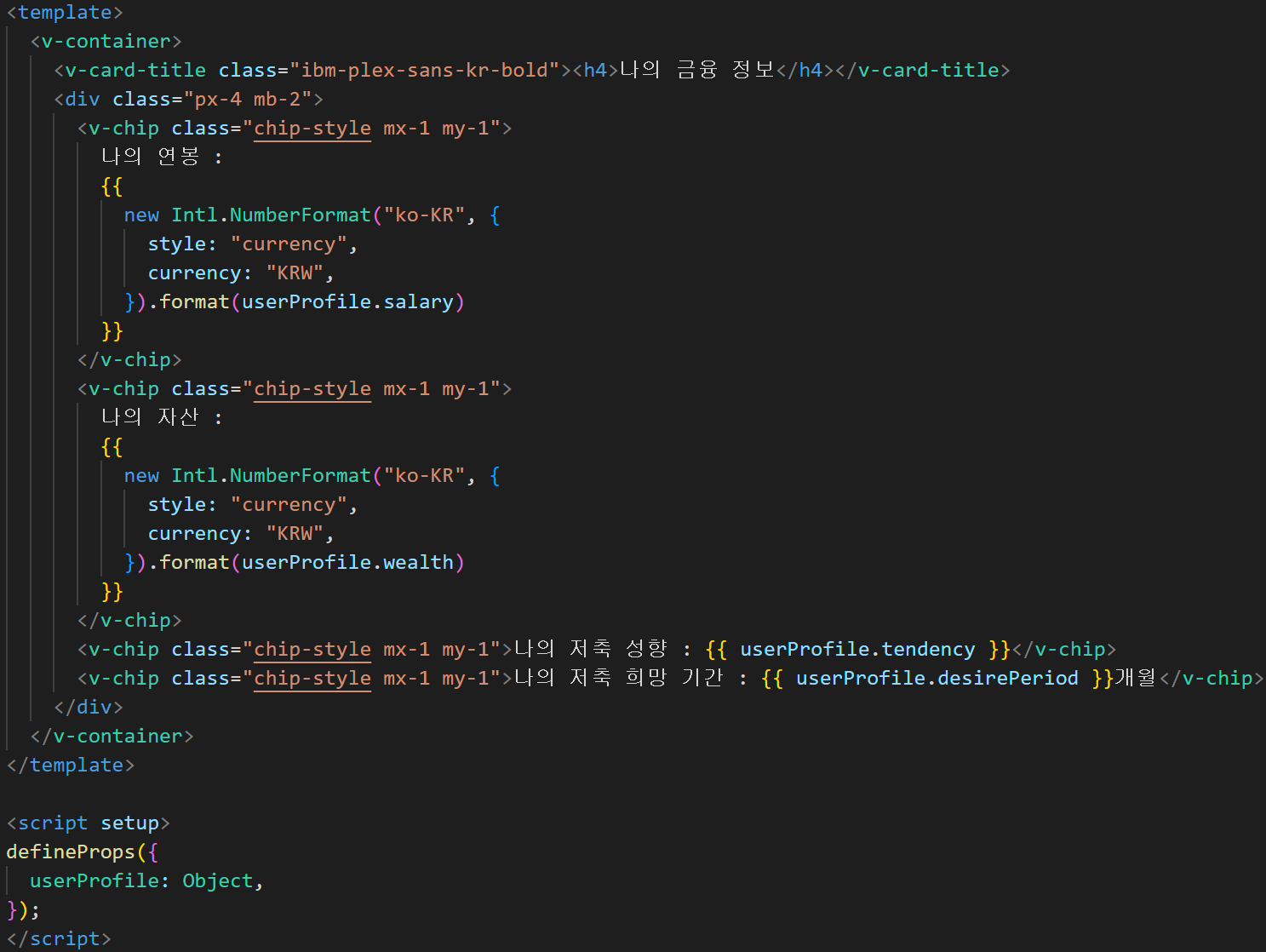 총 3개의 컴포넌트를 분류해주었고, 결과적으로 UserProfileView는 아래와 같이 다이어트 되었다.