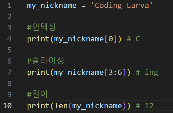 해당 인덱스 위치를 통해 인덱싱, 슬라이싱을 자유롭게 표현할 수 있다.