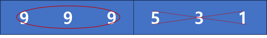 예시를 들었던 [1, 3, 5, 9, 9, 9] 에서는 triple은 존재하나 이외 run 혹은 triple은 존재하지 않기 때문에 baby-gin은 아님을 알 수 있다. 결과적으로 나올 수 있는 경우의 수를 모두 살펴보았으나, baby-gin은 되는 것이 없다는 결론에 도달 할 수 있다.