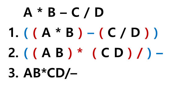 더 나아가 중위 계산식에서 후위 계산식으로 변환 및 계산할 때도 사용할 수 있다.