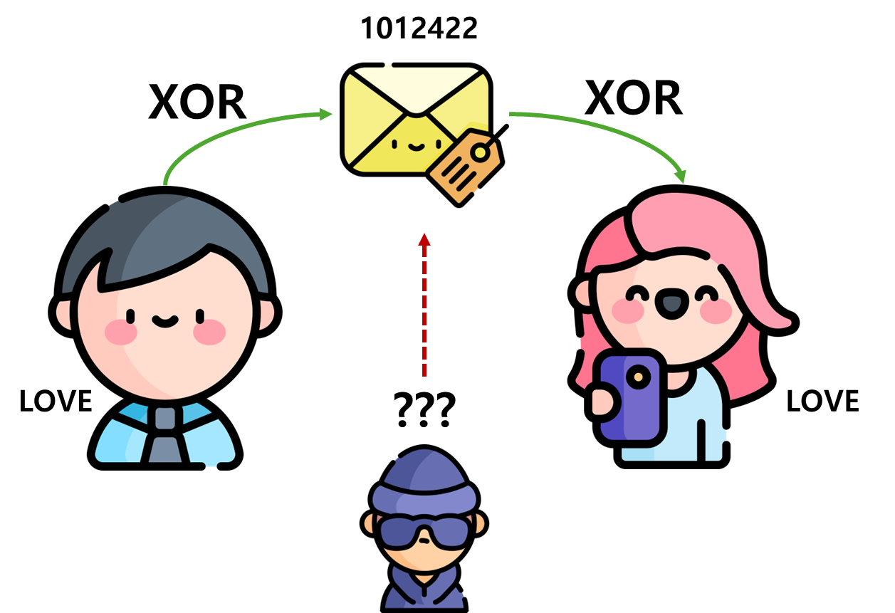 만약 내가 친구에게 특정 코드를 보내려고 한다고 하자. 하지만 다른사람들이 몰랐으면 좋겠어서 XOR연산을 하여 보냈다. 그렇다면 친구는 해당 코드를 알려면 어떻게 하면 될까? XOR연산을 한번 더 하면 본래의 코드로 돌아오는 것을 알 수 있다. 즉, 상대방과 내가 XOR 연산으로 암호화하는 비밀코드를 공유하고 있다면 다른 사람들이 해당 비밀코드를 맞추지 않는 한 추적할 수 없다.