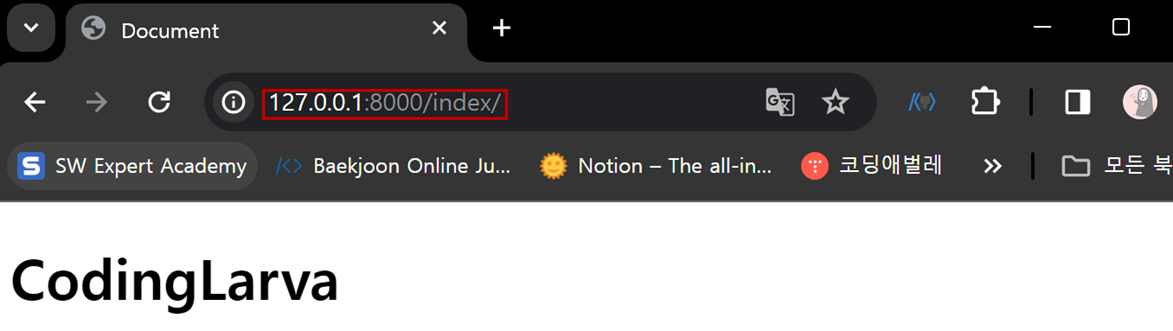 이다. 이때 전체 url은 http://127.0.0.1:8000/index/ 로 요청이 들어올 경우이다.