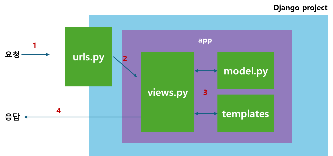 이전 포스팅은 django를 사용하기 위한기본적인 설정을 했다면 이번에는 사용하는 방법을 익힐 차례다. 정확히 흐름을 익히면 자연스럽게 작성이 가능하다고 하는데, 그렇게 됐으면 좋겠다..!