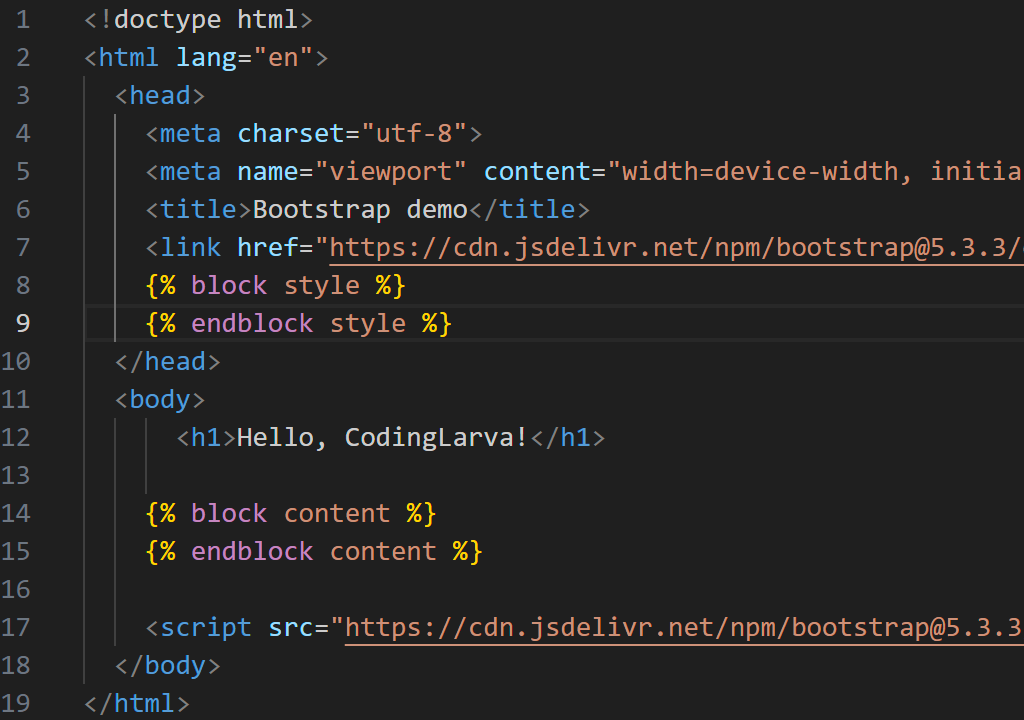 block tags를 사용하면 block 을 연 공간과 block을 닫은 공간 사이에 하위 템플릿 내용이 들어갈 것이다. 태그 이름은 아무거나 지어도 되고, 연결해줄 때 잘 맞춰주기만 하면 된다.