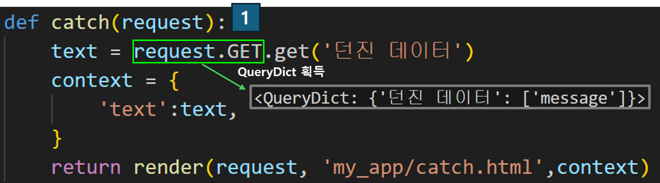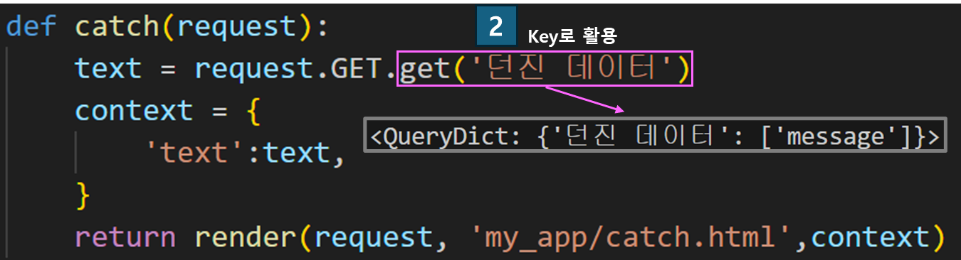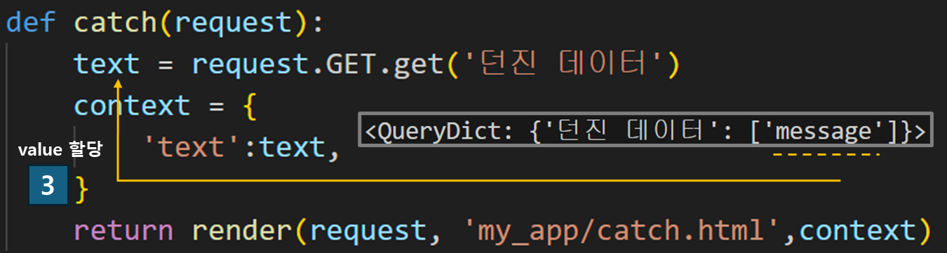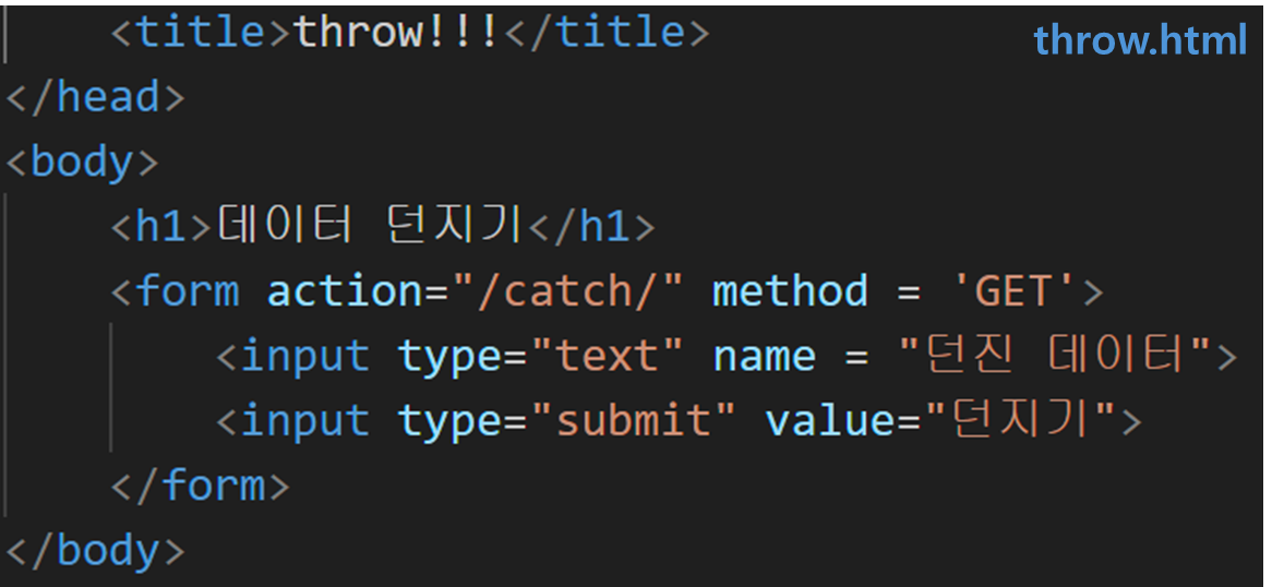 이후 과정은 얻어진 text 데이터를 context의 딕셔너리 차량에 싣고 다음 목적지로 향하게 된다. 근데 여기서 의문인 점은 '던진 데이터'는 도대체 어디서 온걸까? 이 데이터는 throw.html에서 넘어온 택배이니 한번 가보자.