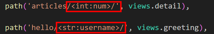 : URL 일부에 변수를 포함시키는 것 (변수는 view 함수의 인자로 전달 할 수 있음)