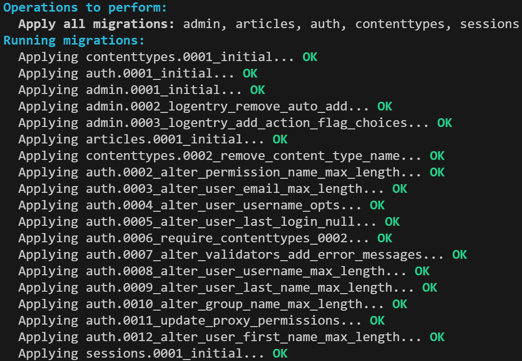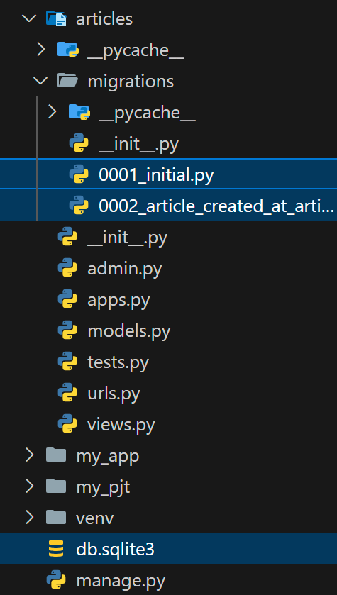 근데 왜 migration 폴더에서 initial 파일에 덮어씌워진 것이 아니라 새롭게 생성될까? 이는 Django가 설계도를 쌓아가면서 추후 문제가 생겼을 때, 복구가 가능하게 만들어 놓은 안전장치이다. (git commit과 유사)