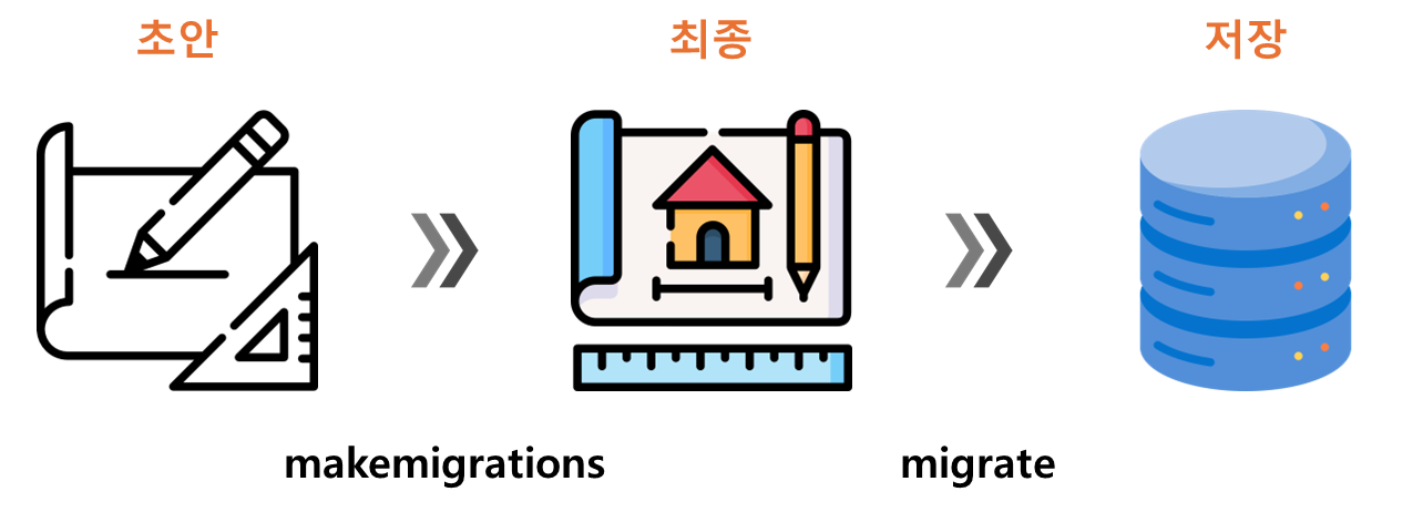 - makemigrations : model class를 기반으로 최종 설계도(migration) 작성