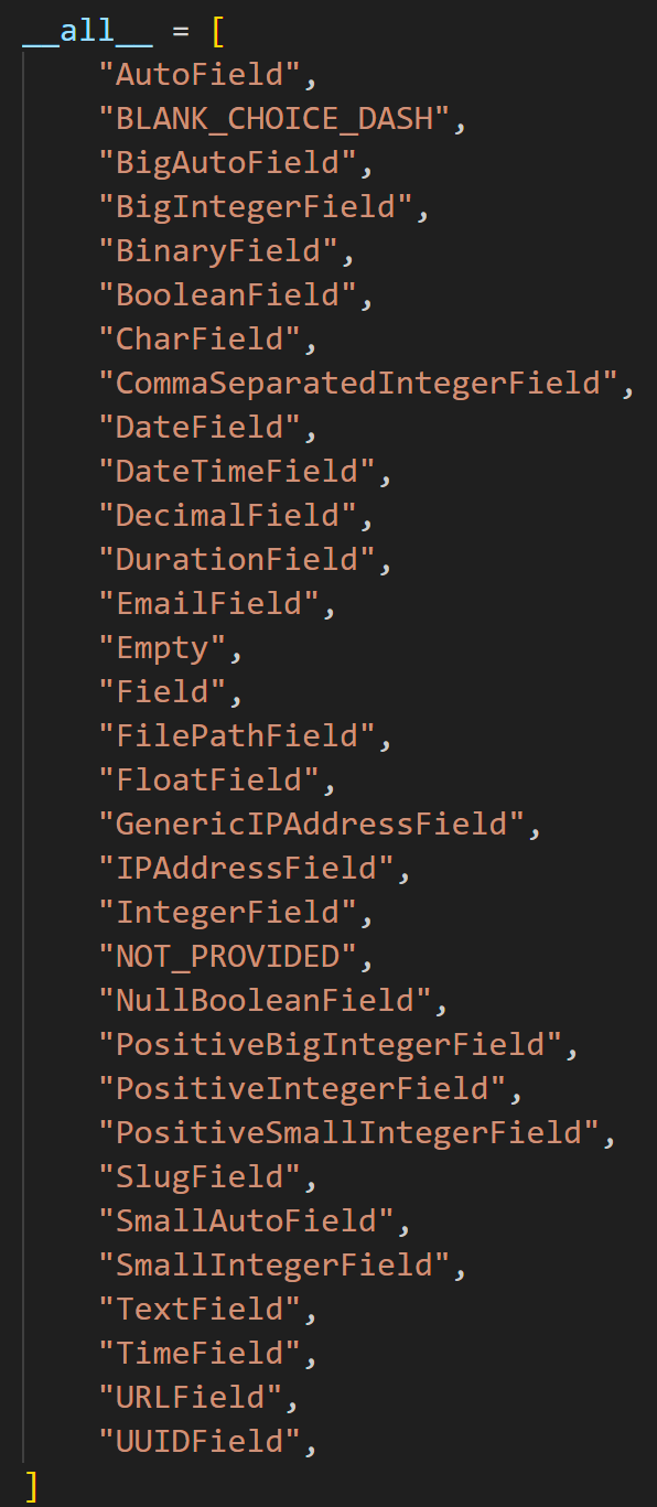 : 다양한 필드가 있으며 django의 models에서 제공하는 기본 Field를 사용한다
