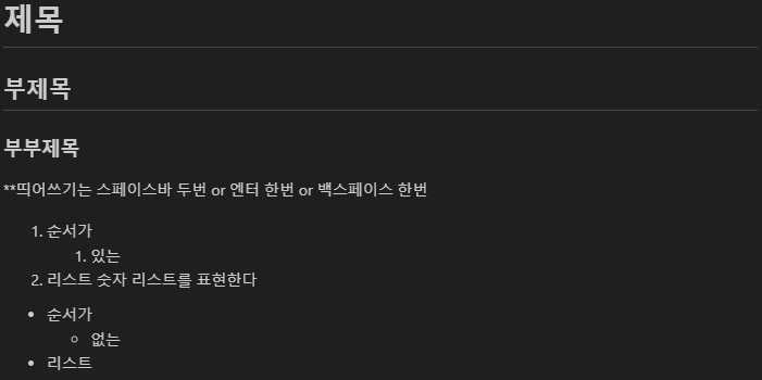 Tistory에서는 마크다운언어가 잘 표현되지 않지만(구글링하니 html, css 스킨 적용 및 마크다운 언어 작성 후 html 모드로 변경 한 후 일부 편집 과정을 가지면 표현 가능) 꼭 쓸 줄 알아야 하는 것으로 생각된다.