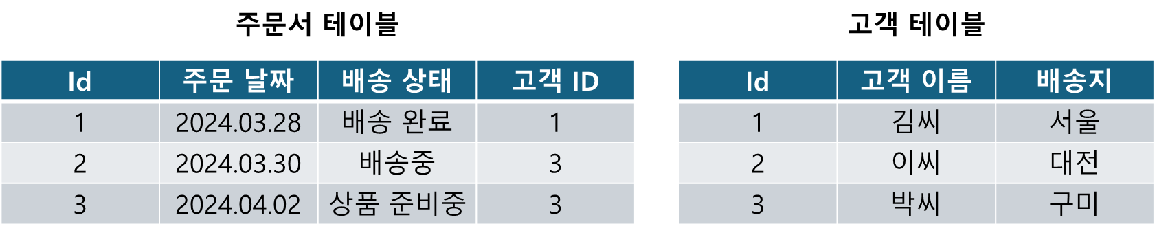 : 이 관계로 인해 두 테이블을 사용하여 데이터를 다양한 형식으로 조회를 할 수 있다.