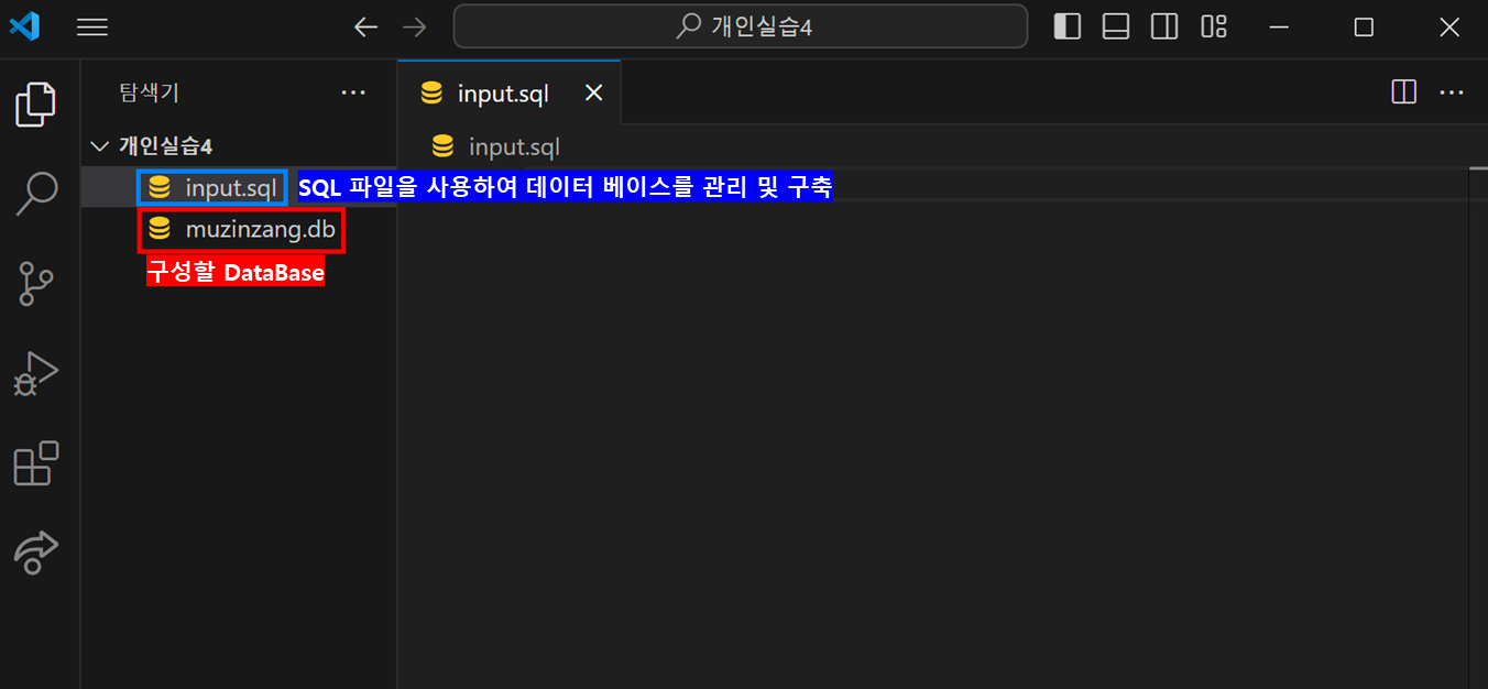db파일은 직접적으로 건들일은 없고 입력은 .sql 파일로하니 구분해서 사용하면 된다. 또, 해당 출력을 보려면 sqlite 관련 extention 설치가 필요하니 사전 설정을 하고 시작하면 되겠다.