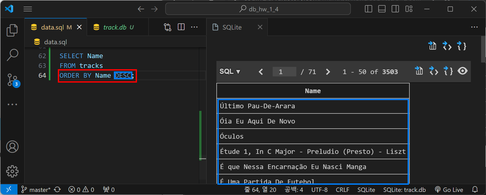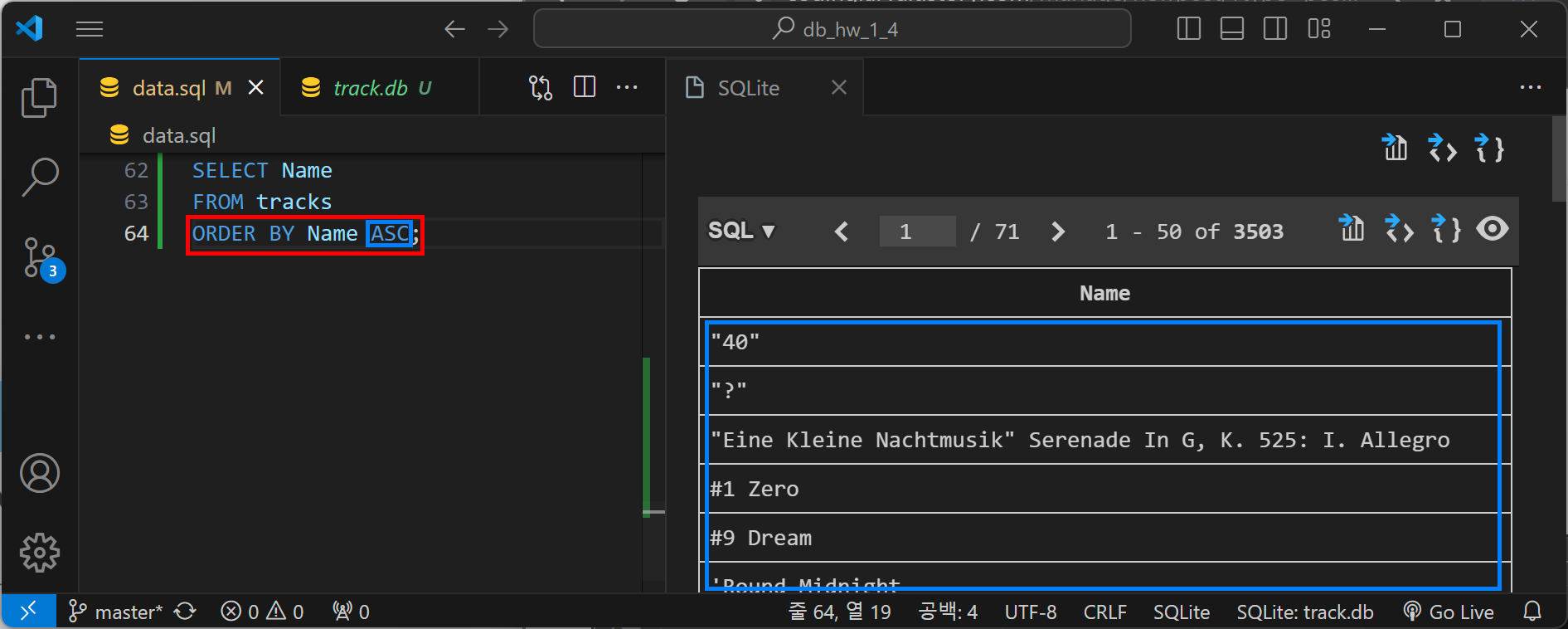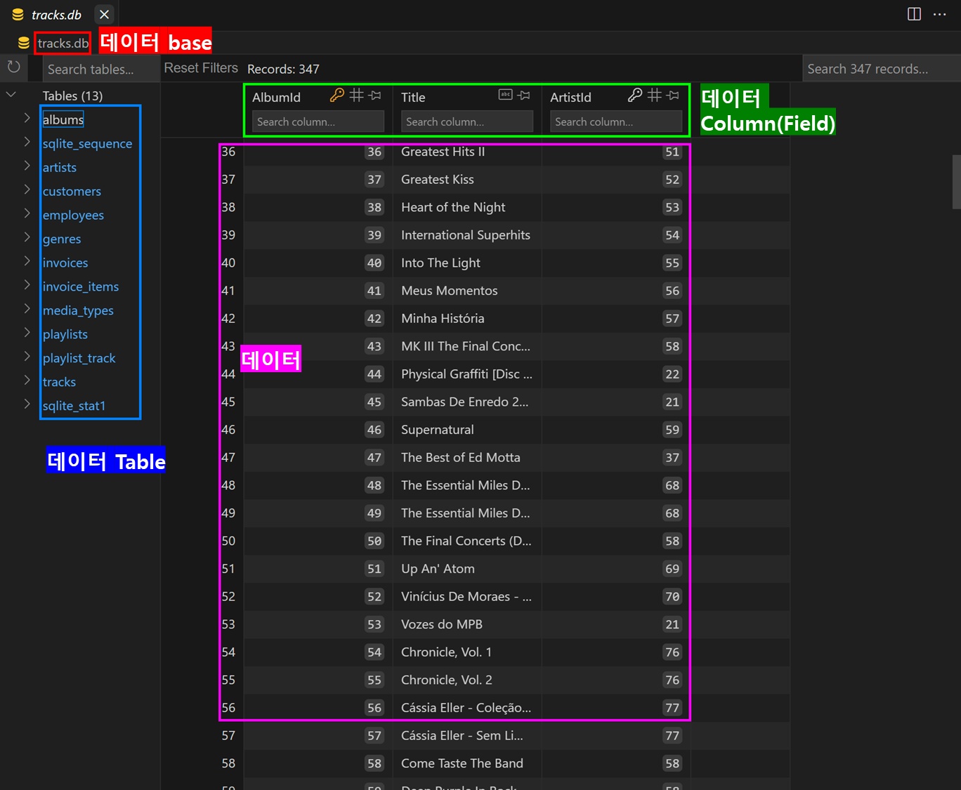 table 이름이 db 파일의 이름과 동일해서 헷갈릴 수 있으나, SELECT syntax에서는 데이터 베이스 파일자체를 탐색하는 것이 아니라 sql 파일에서 db파일을 연결 해둔다.