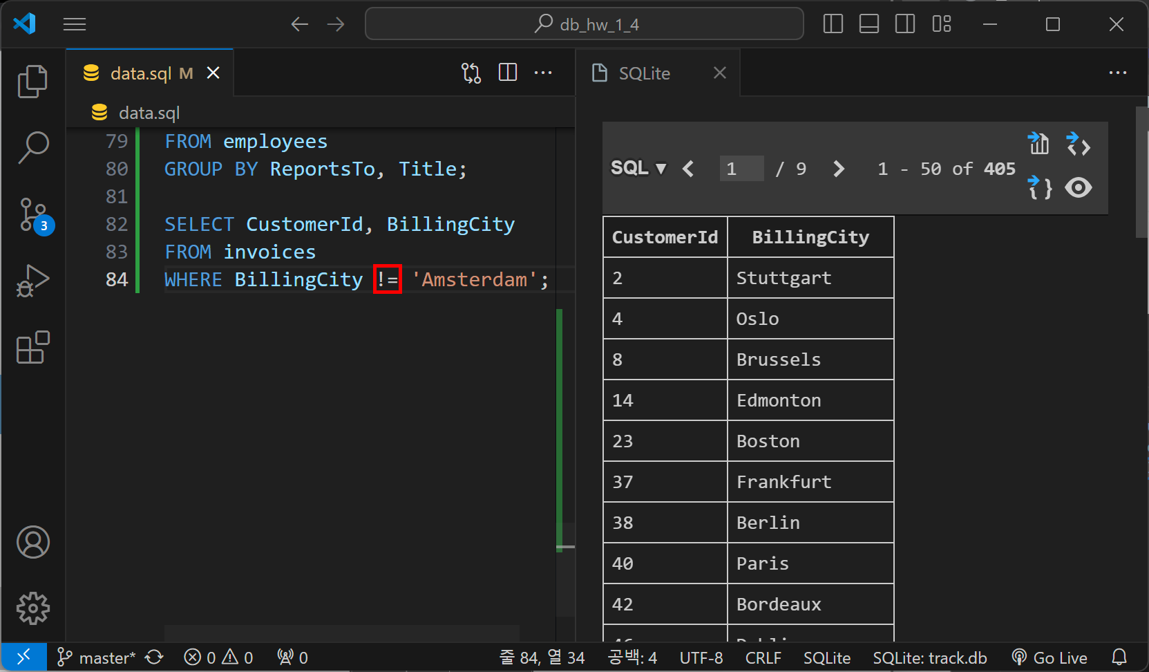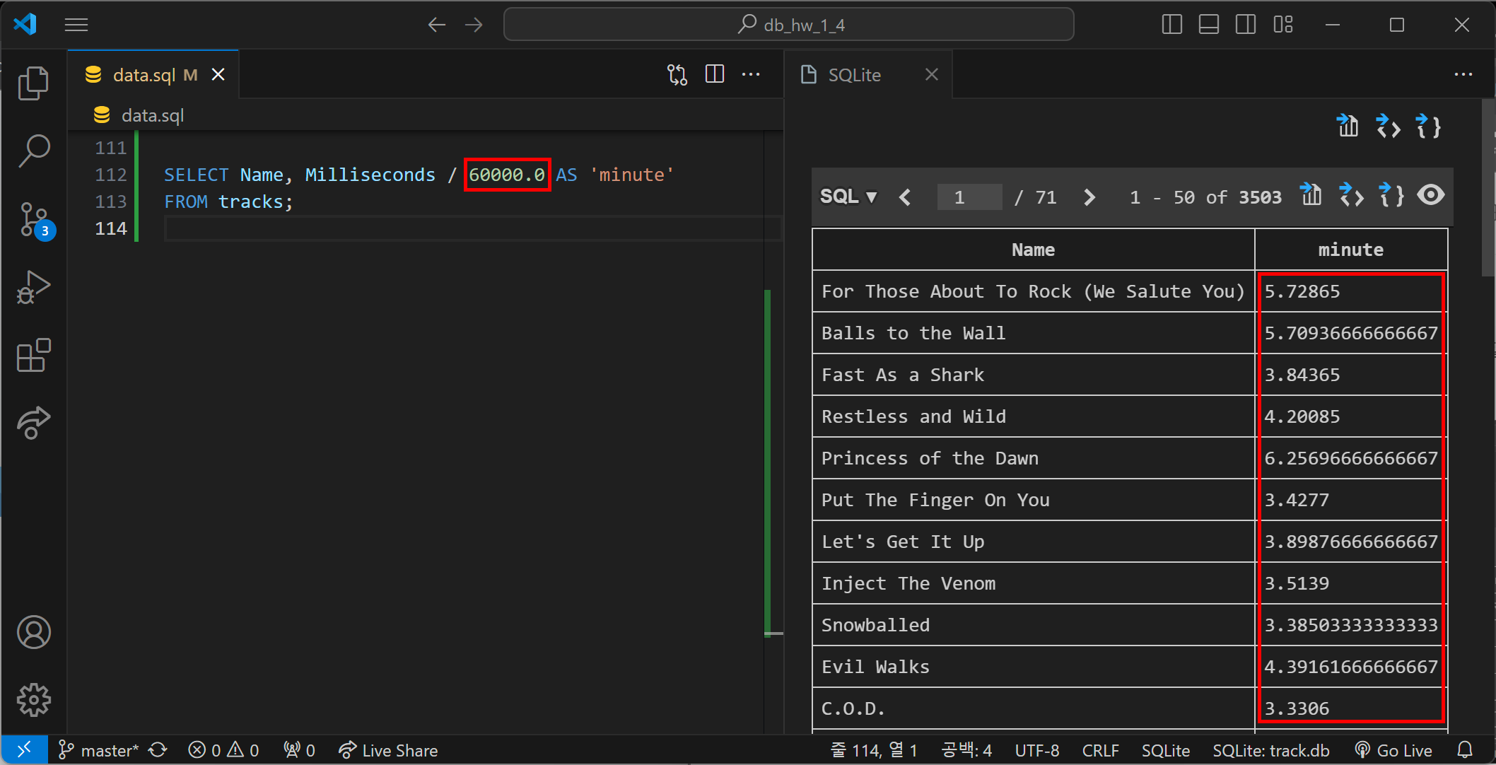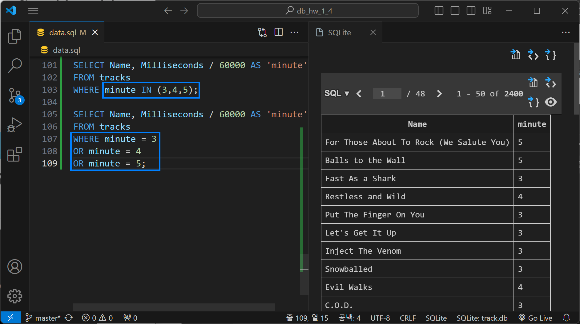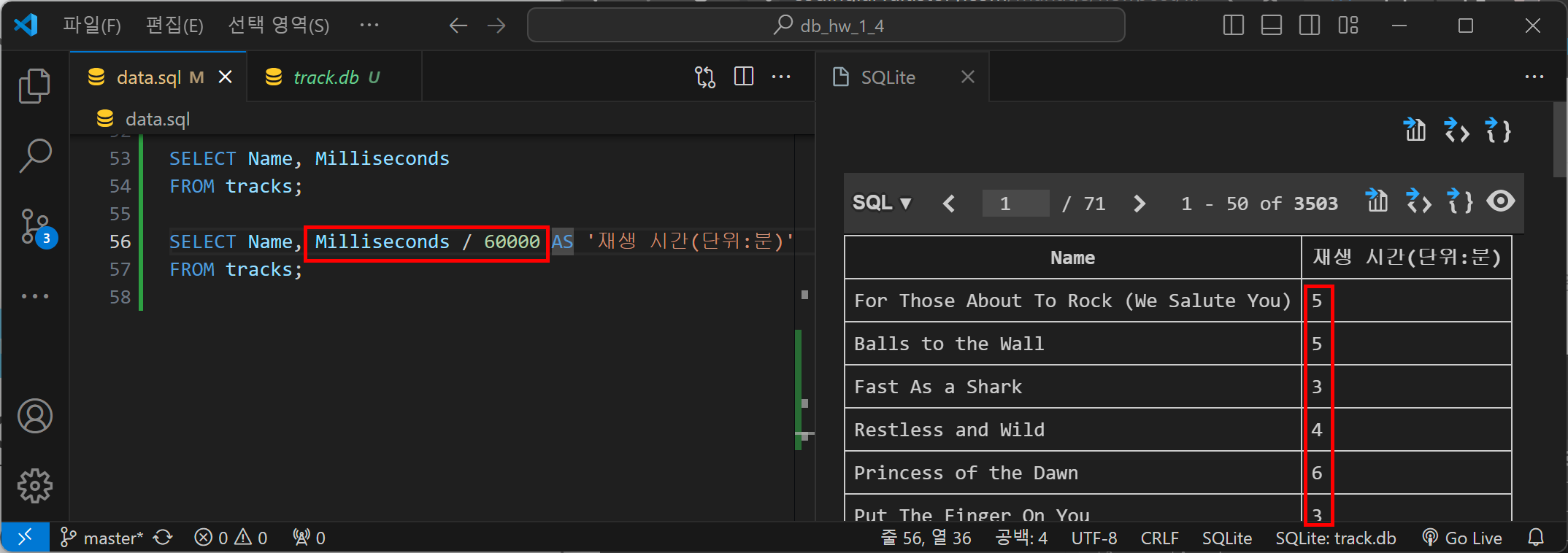 table 이름이 db 파일의 이름과 동일해서 헷갈릴 수 있으나, SELECT syntax에서는 데이터 베이스 파일자체를 탐색하는 것이 아니라 sql 파일에서 db파일을 연결 해둔다.