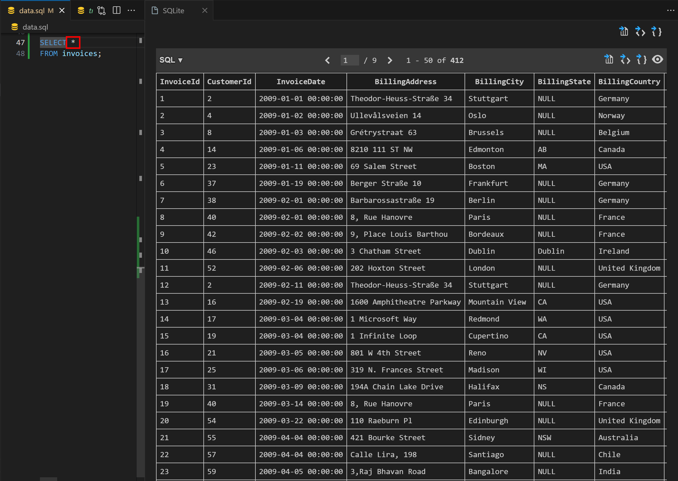 그러면 데이터를 보려면 전부 Column(Field) 명을 알고 써야할까? 아니다. 한번에 나타낼 수 있는 만능 기호 ' * '(Asterisk) 가 있다!!