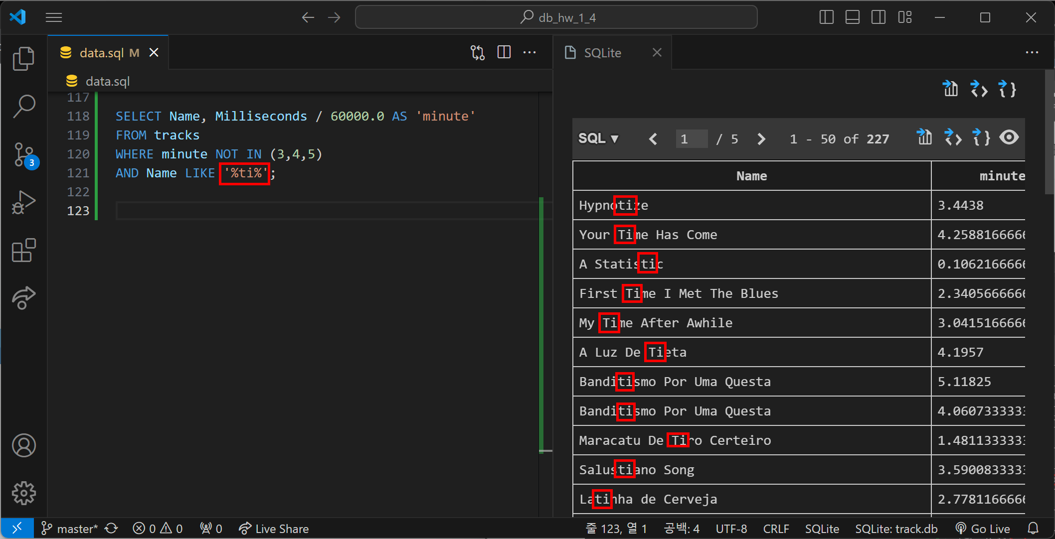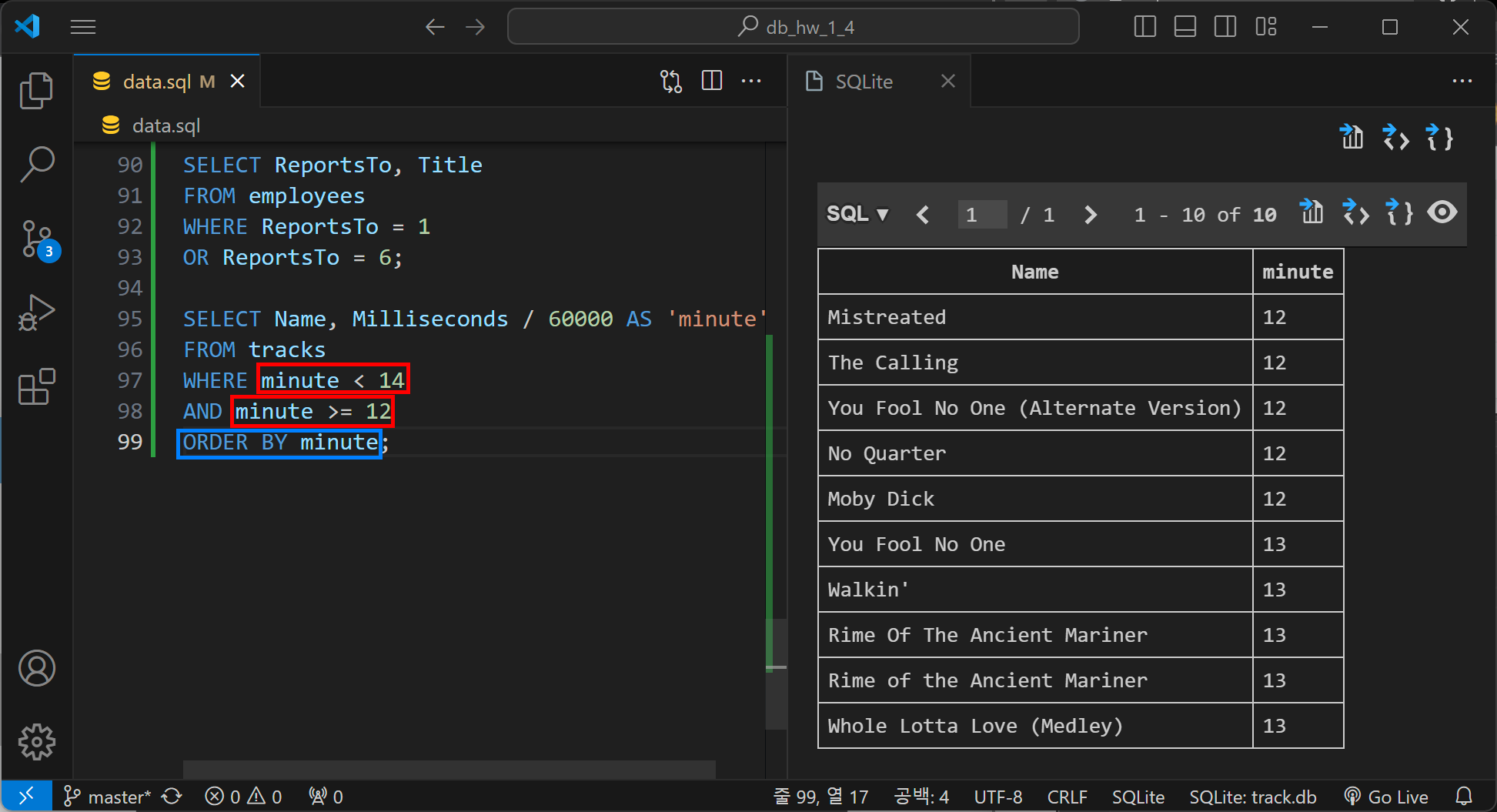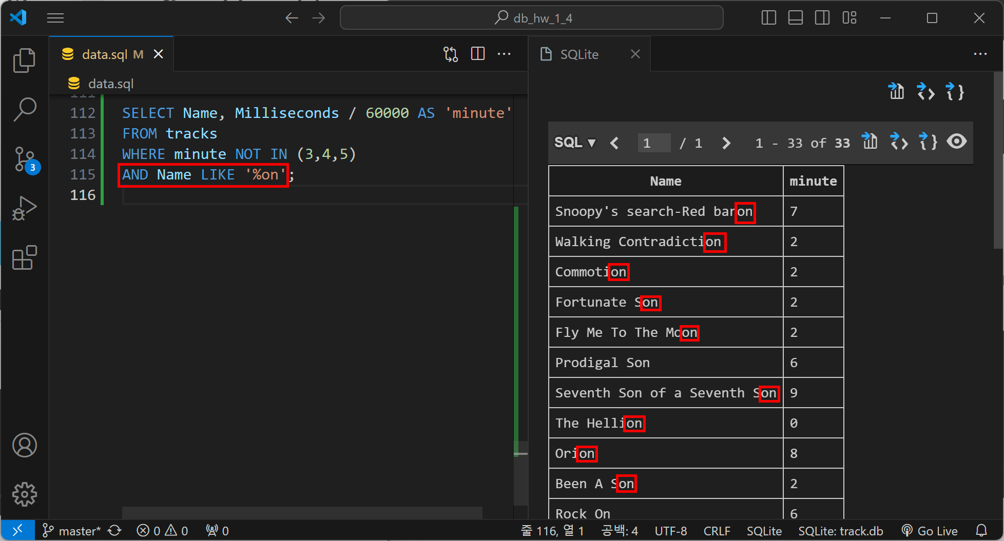 SQL하면 잔뜩 쫄아서 어떻게 데이터를 만지지.. 했는데 생각보다 알고리즘 푸는거 같아서 재미있었다. 마치 조건문 if와 변수 할당과 출력하는 느낌이랄까? 이런거만 하고싶어~~ 물론 조회할 세부 사항이 늘어날 때마다 머리는 터질거 같긴 하더라.. 다음 시간은 데이터 테이블을 직접 생성하는 법을 배워보자!!