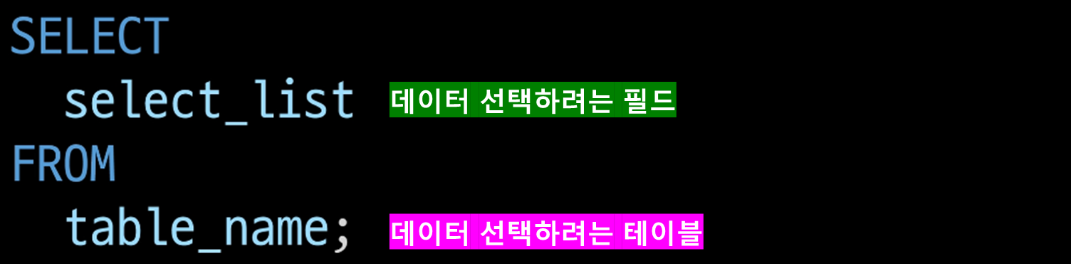 'table_name 테이블에서 select_list 필드의 모든 데이터를 조회' 를 의미한다.