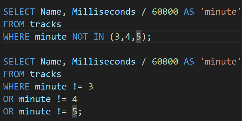아쉽게도 아니다. 왜냐면 IN 인 기본적으로 OR를 의미하고 있으니 그에 반대를 사용하게 된다면 WHERE OR 이 아닌 WHERE AND를 사용해야한다!