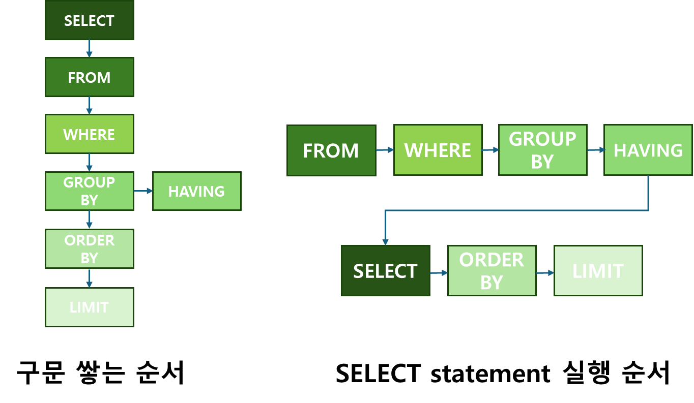 구문 쌓는 순서는 어느정도 숙지 되겠지만, 실행순서에 따라 데이터 조회가 달라질 수 있으니 꼭 인지하면서 조회를 해야한다.