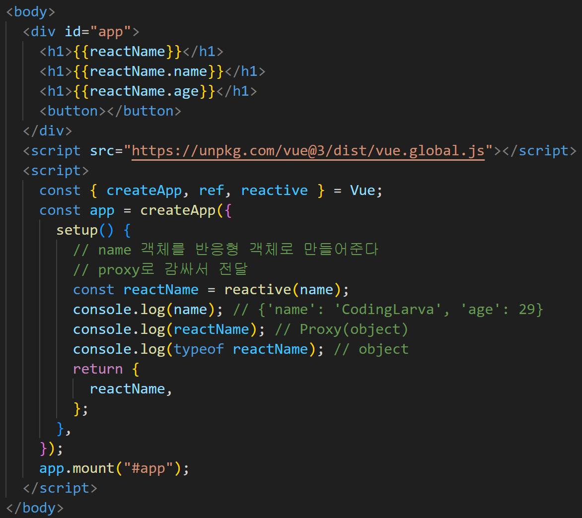 - reactive() : 객체를 반응형으로 만들때 사용