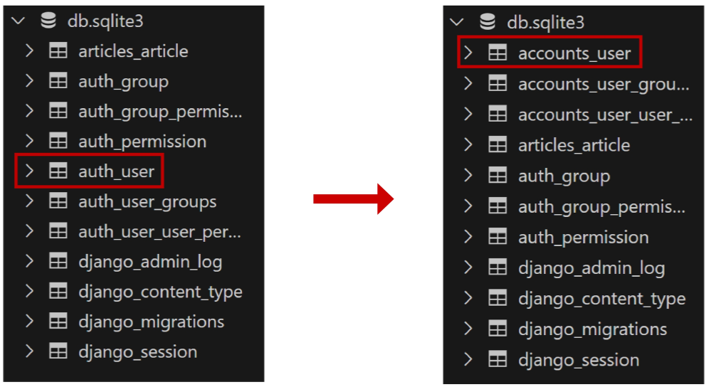 - > 프로젝트 중간에 AUTH_USER_MODEL을 변경할 수 없으므로 프로젝트 초기에 설정해줘야 하는 값